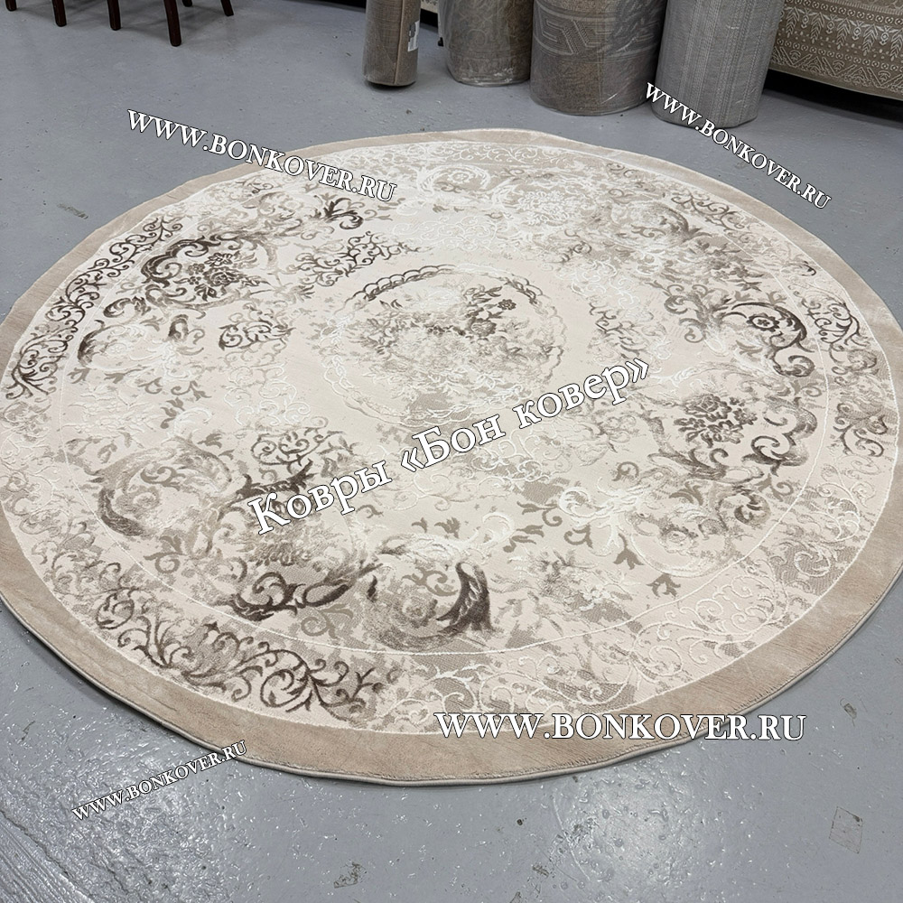 Турецкий Ковер Для Гостиной Дизайн 46 Бежево-Коричневый Круг