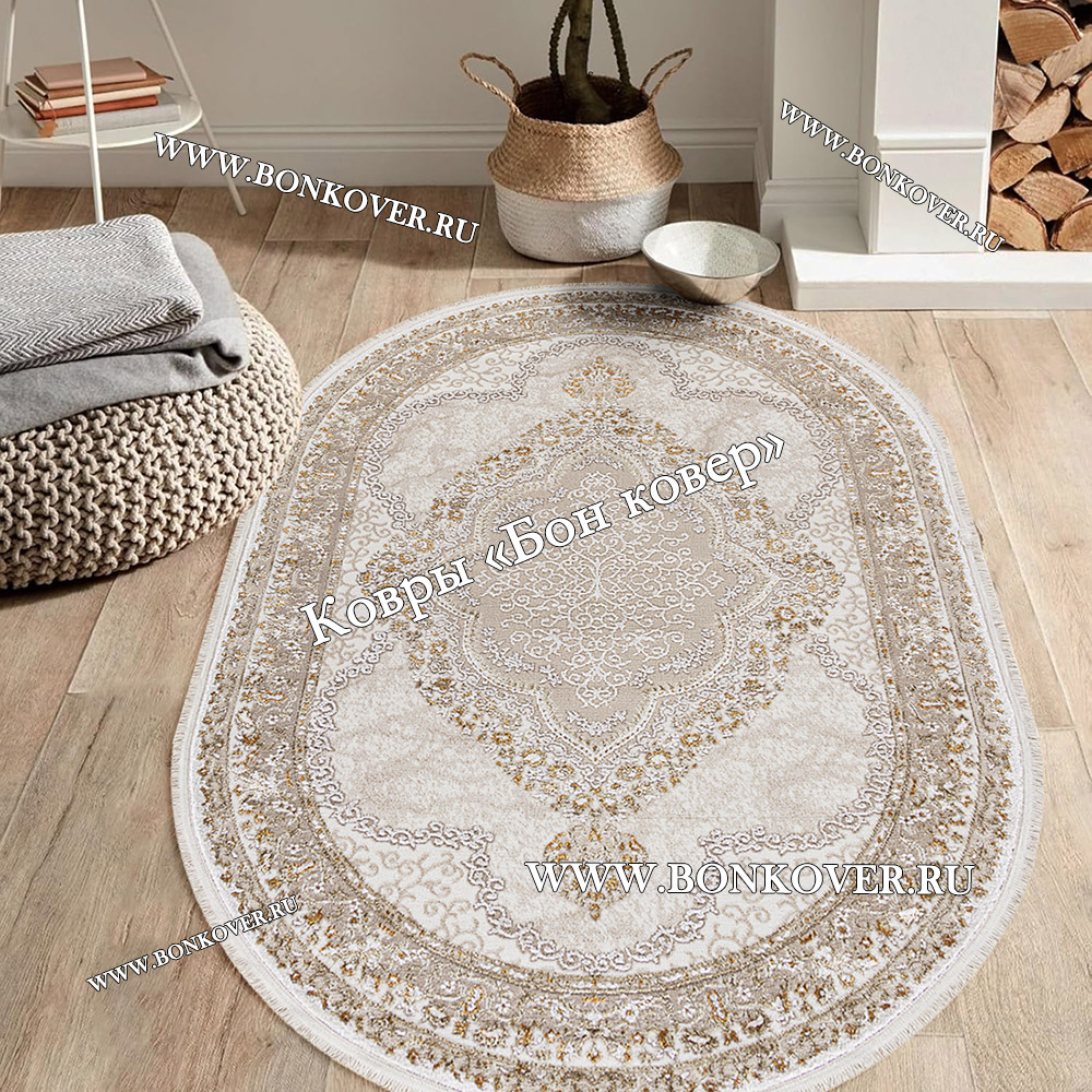 Ковер Для Гостиной Арт 29881 Турция Бежевый с Белым Овал станет шикарным преображением жилого помещения, подчеркивая высокий статус владельца.