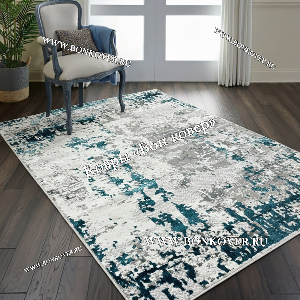 Шикарный Современный ковер для комнаты 03 Бирюзовый наполняет интерьер комнаты теплом и уютом, гармонично сочетает в себе изящество и стиль. Он создан из высококачественного сырья, комфортный и долговечный.