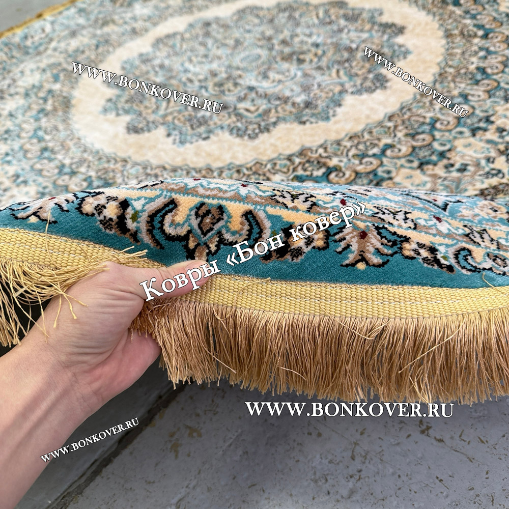 Импозантный Восточный Ковер Для Гостиной Медальон Дизайн 28747 круг наполняет интерьер комнаты теплом и уютом, гармонично сочетает в себе изящество и красоту. Он соткан из высококачественного сырья, комфортный и долговечный.
